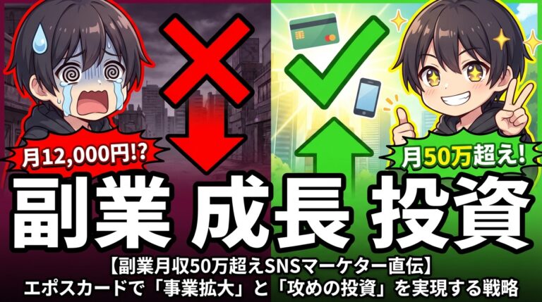副業で稼いだお金、どう使えばもっと増える?脱サラSNSマーケターの伊藤が、エポスカードを活用した賢い「再投資戦略」を実体験ベースで解説。あなたの副業を次のステージへ!